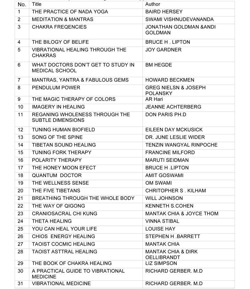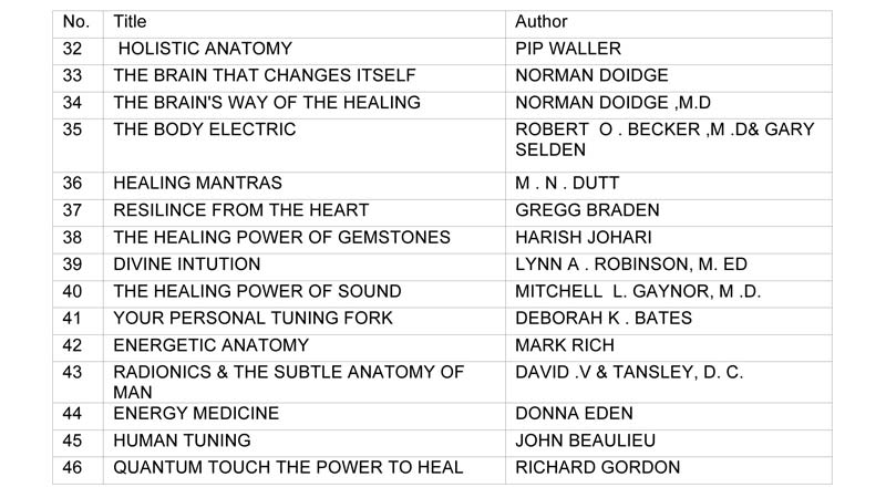 3.8. “Every organ, bone, and cell has its own healthy resonant frequency. Sound healer Shari Edwards has the remarkable ability to hear these frequencies, and she has assigned a hertz frequency to each of the muscles, organs, and tissues of the body. Shari can also produce these sounds with her voice and has devised a machine that reproduce these sounds. [Page 143]” I have not been able to lay my hands on these established frequencies. I have written to her to find out how I can get them and I am awaiting her response. Once I receive it the next challenge, in my view, will be to ascertain whether the frequencies will remain the same despite genetic, climatic, food and other aspects which are different here in India as compared to the west. For that matter differences between any two countries.
